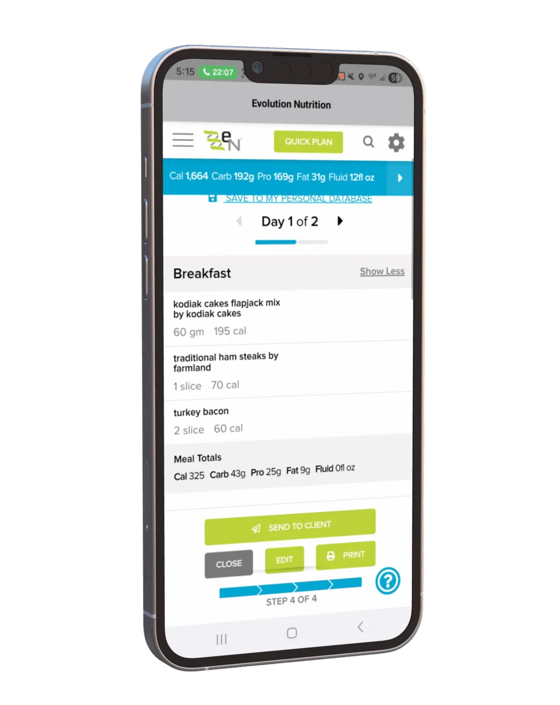 -Clear calorie and nutrient targets — shown as both daily totals and per-meal breakdowns